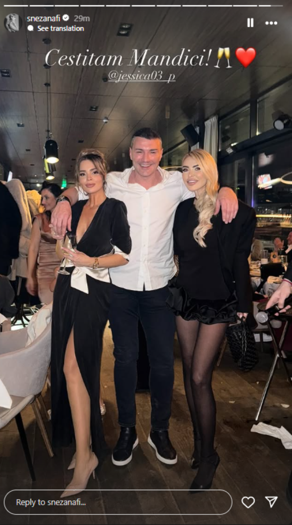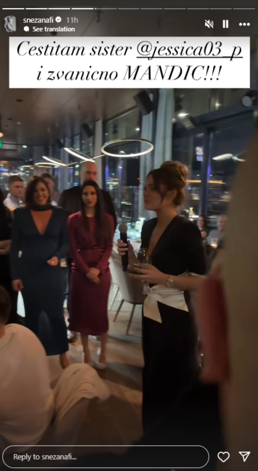 Vada i Jasmina okupili su prijatelje i porodicu u jedom restoranu gde su se do sitnih sati provodili, a mlada je za svadbeno veselje odabrala crnu haljinu sa velikom belom mašnom. Imala je i beli bidermajer od prirodnog cveća, koji je bacila veselim gošćama, a u opisu jedne od fotografija koja se pojavila na društvenim mrežama stajalo je "Zvanično Mandić".