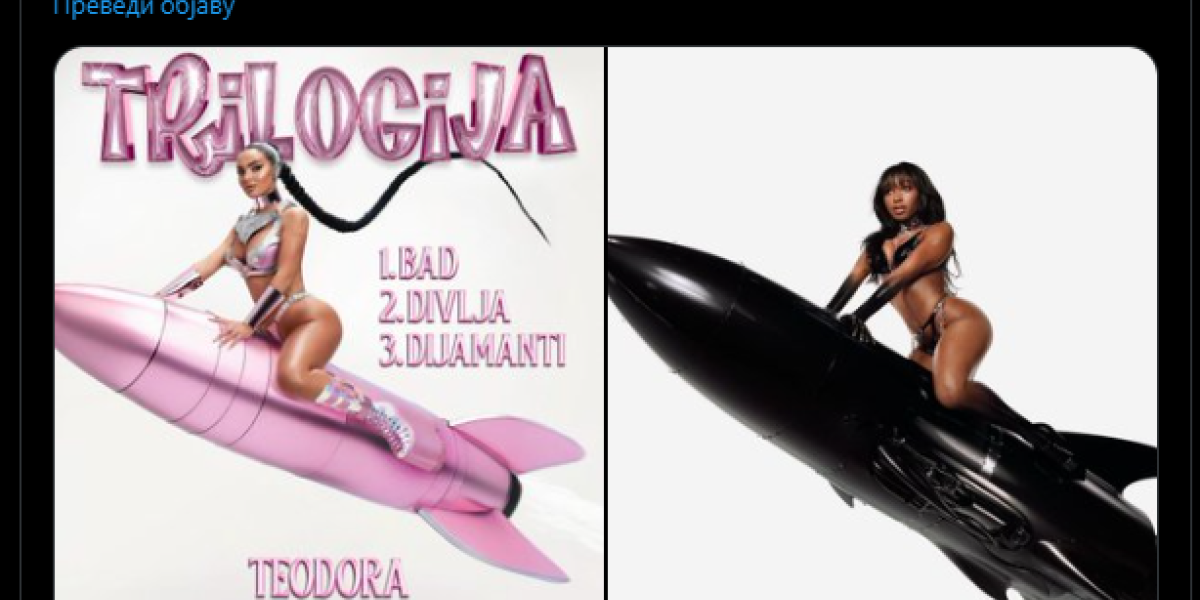 Srpska pevačica pre nekoliko dana objavila je tri nove pesme, a na promotivnoj fotografiji "Trilogije" Teodora sedi na ružičastoj raketi u izazovnom stajlingu. Kako je pevačica pesme objavila na svoj rođendan, dobila je čak i tortu koja rekreira pomenutu fotografju.