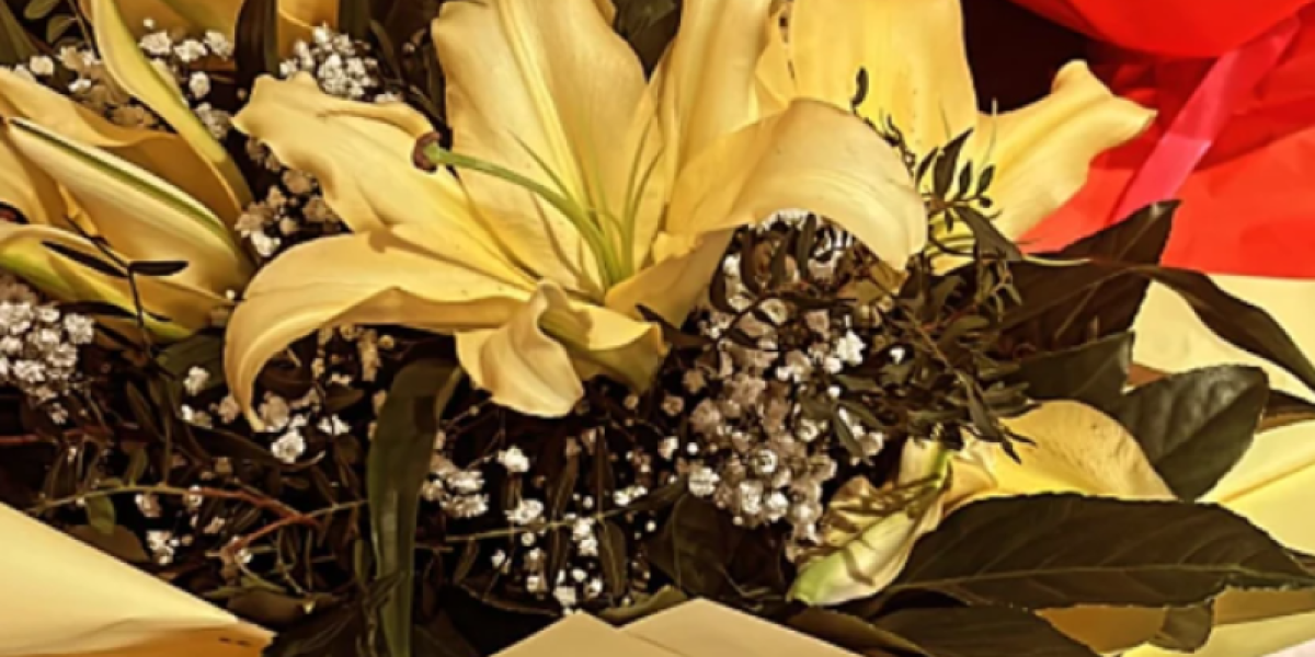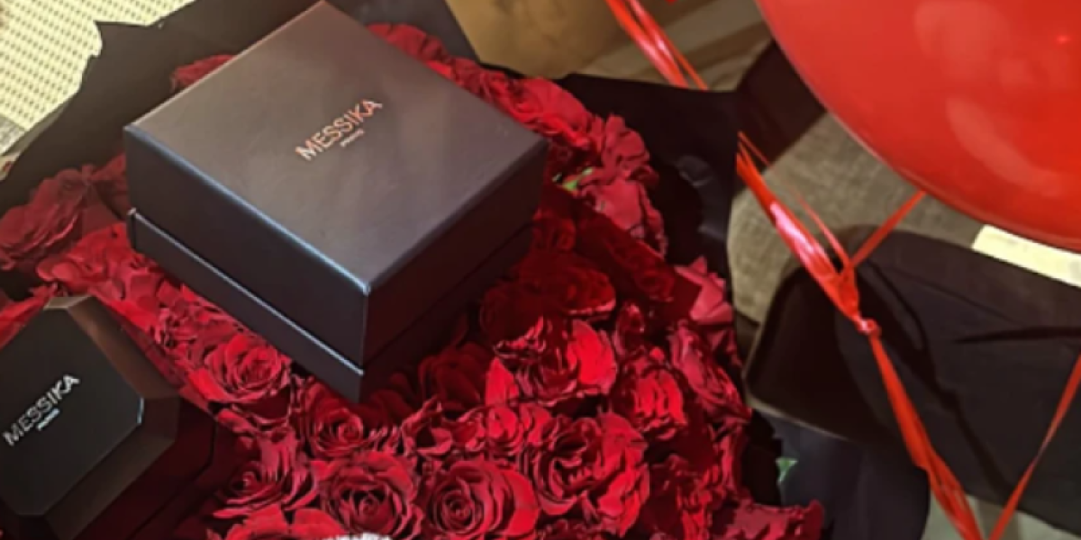 Slavljenica je dobila ogroman buket crvenih ruža, velikog plišanog medu sa srcem, a poklon je bio okružen crvenim balonima. Na cvetnom aranžmanu nalazile su se i kutije luksuznog nakita.