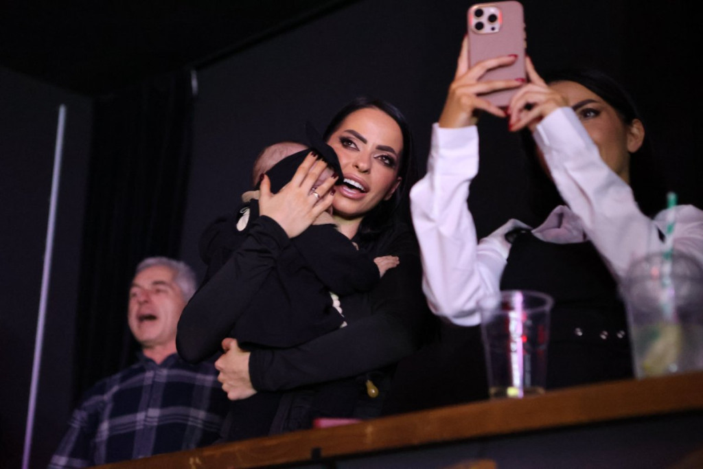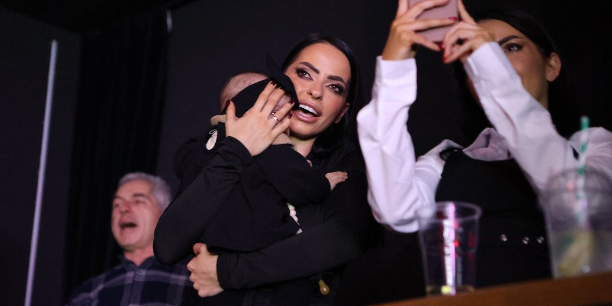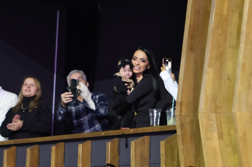 Dok je Lazić pevao Šabanove hitove, njegova žena je sve vreme igrala sa ćerkicom, koju je držala u naručju. Da mala Srna uživa u tatinom glasu govori osmeh na licu koji je imala.