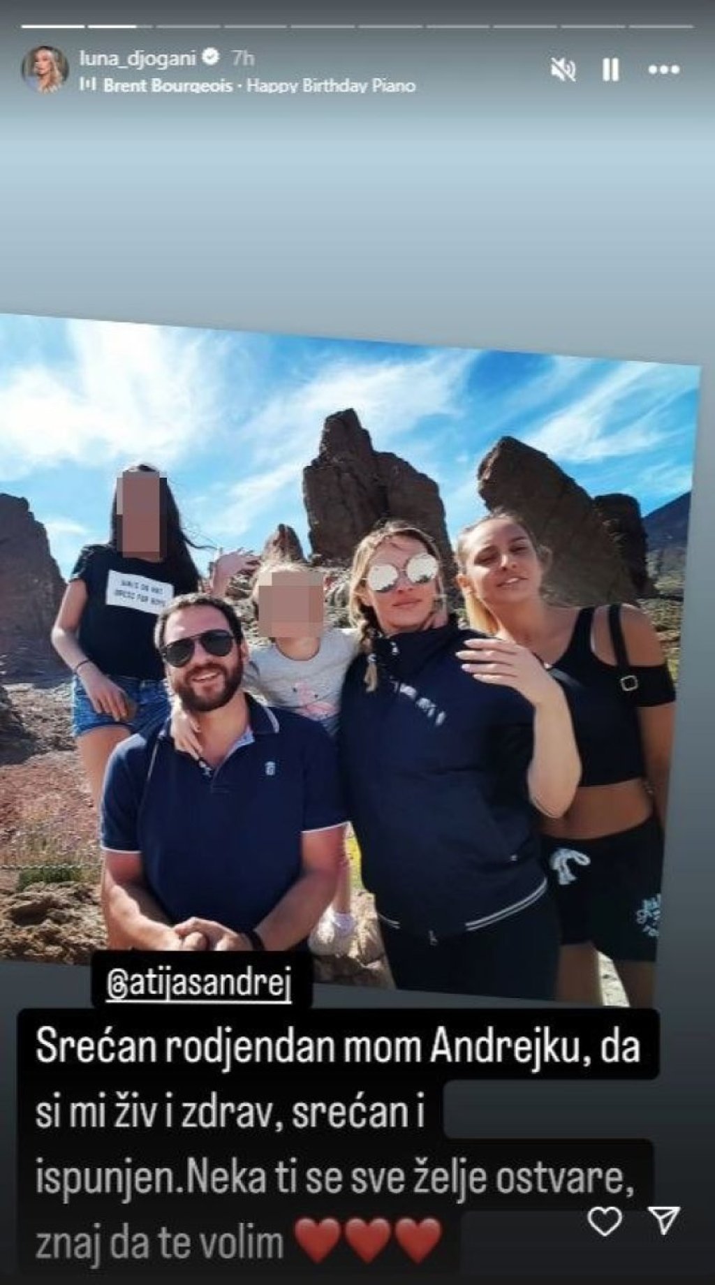 "Srećan rođendan mom Andrejku, da si mi živ i zdrav, srećan i ispunjen. Neka ti se sve želje ostvare znaj da te volim", napisala je Luna, stavivši tri emotikona srca pored poruke.