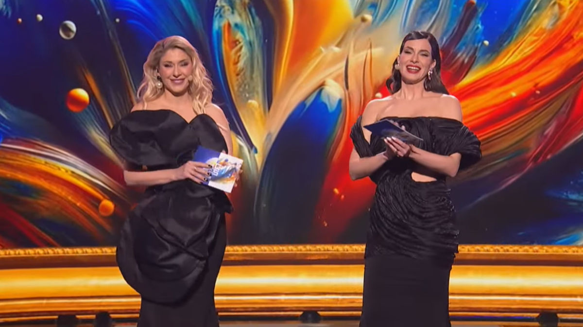Voditeljke su blistale u dugim, elegantnim haljinama, neobičnog kroja.