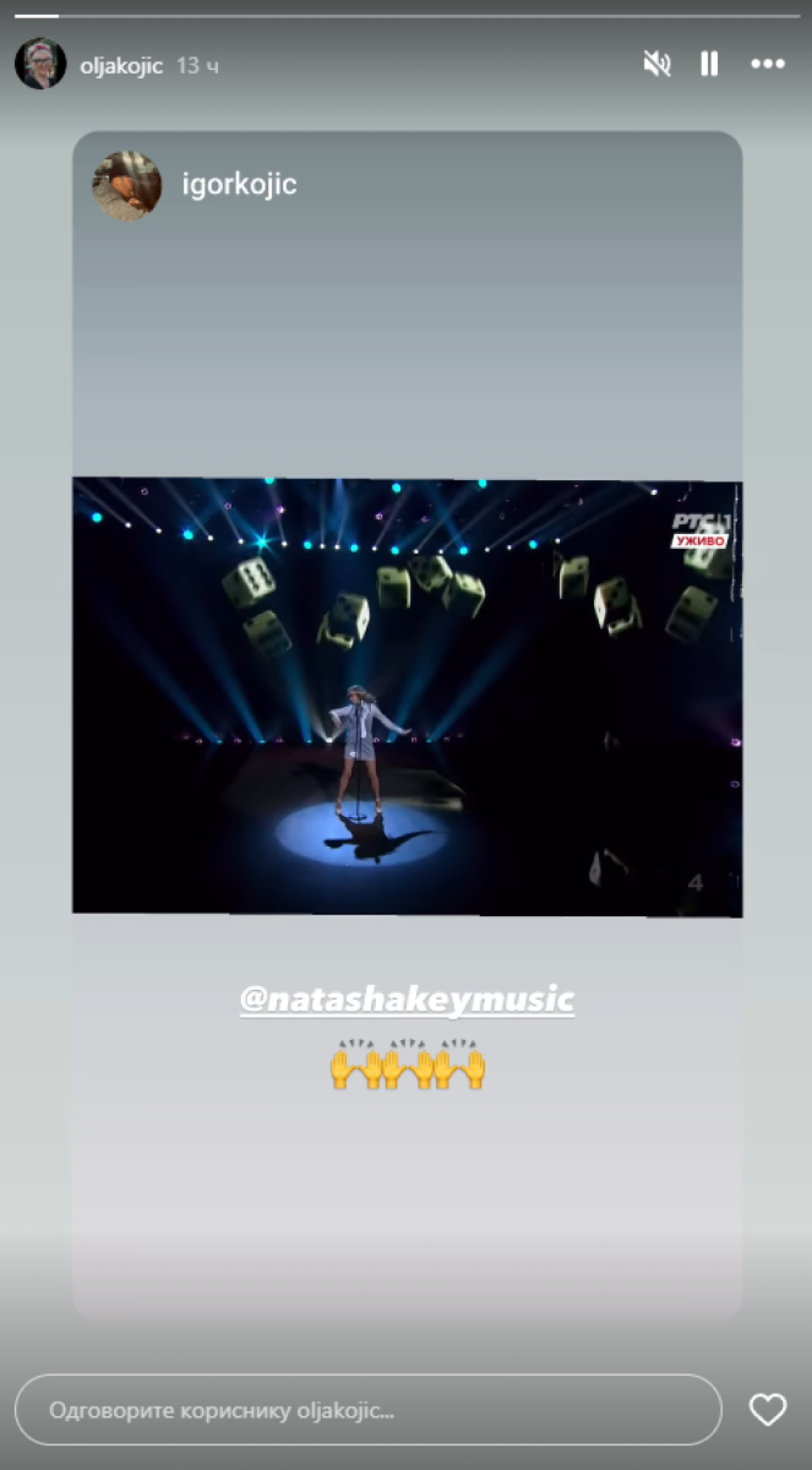Njen brat Igor, kao i majka Olja su putem svojih Instagram profila objavili Natašin deo nastupa i na taj način su stavili do znanja da su uz nju, kao i da su ponosni na ono što je pokazala na sceni.