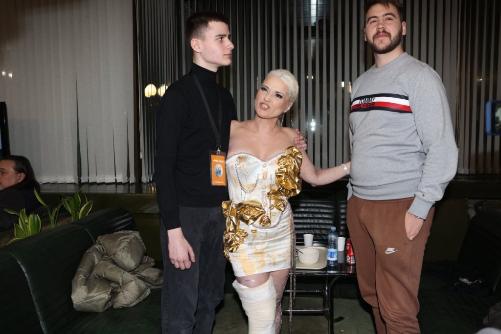 19.52 U Radio-televiziju Srbije stigla je Maja Nikolić u pratnji sina. Pevačica je zablistala u mini haljini, na nozi gips