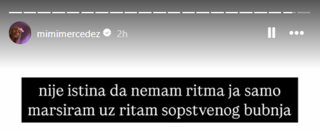"Nije istina da nemam ritma, ja samo masiram uz ritam sopstvenog bubnja", napisala je Mimi putem društvene mreže Instagram