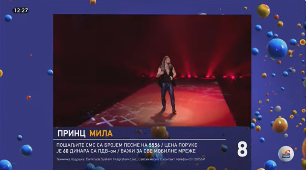 21.40 Princ je nastupio s baladom "Mila". Pevač je na drugoj polufinalnoj večeri doživeo peh, kada je na njega pala scenografija. Srećom, ljudi iz organizacije Javnog servisa su pritekli u pomoć, pa on nije stradao