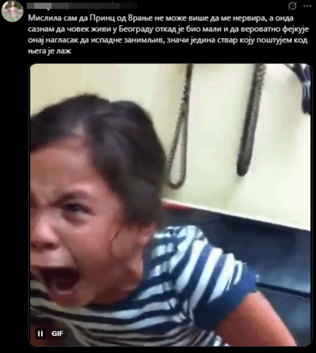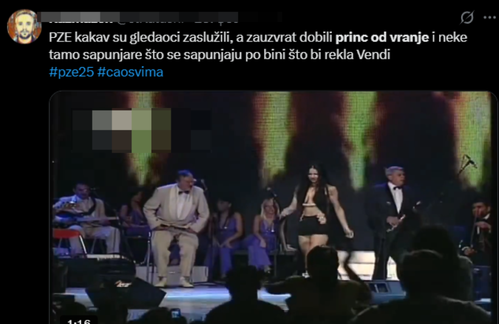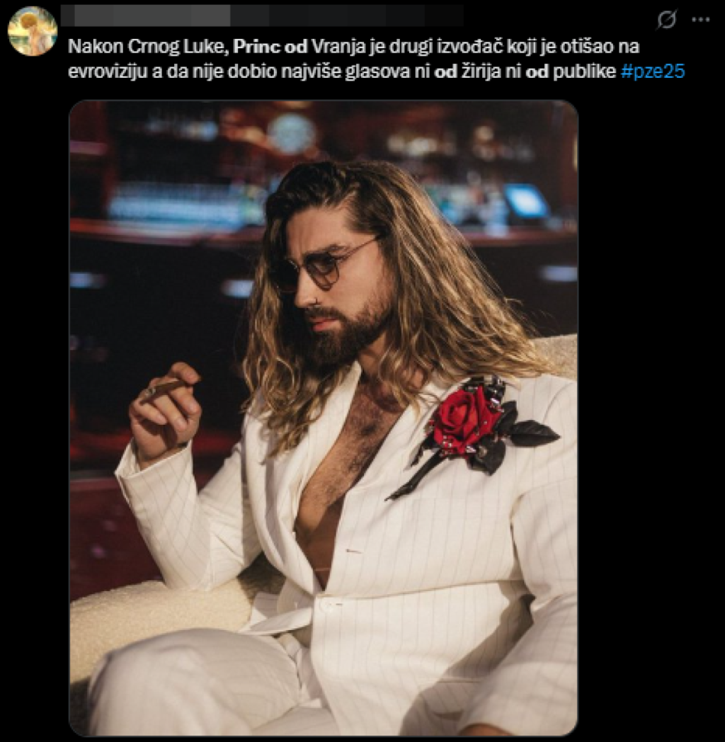 "Nakon Crnog Luke, Princ od Vranja je drugi izvođač koji je otišao na Evroviziju a da nije dobio najviše glasova ni od žirija ni od publike", "Jedina dobra stvar što je Princ pobedio na PZE je što se verovatno nikad više neći prijaviti. Spašeni smo na neki način", "Samo ime Princ od Vranje mi je dovoljno da se iznerviram. Ne moram ni da vidim mogu da zamislim kako izgleda isto ovako", "Princ od Vranje??? Šta je sa nama kao narodom?", "Svi mislimo da je da budeš zvezda potrebno da budeš i talentovan i lep, ali onda vidiš Princa od Vranje i kao e je*iga ipak ne znači", "Ali Princ pobedio na PZE, a ja ne vidim nijedan pozitivan komentar ovde. Sve je jasno. Jeftina namestaljka RTS-a. Sram vas bilo!" samo su neki od komenatra.