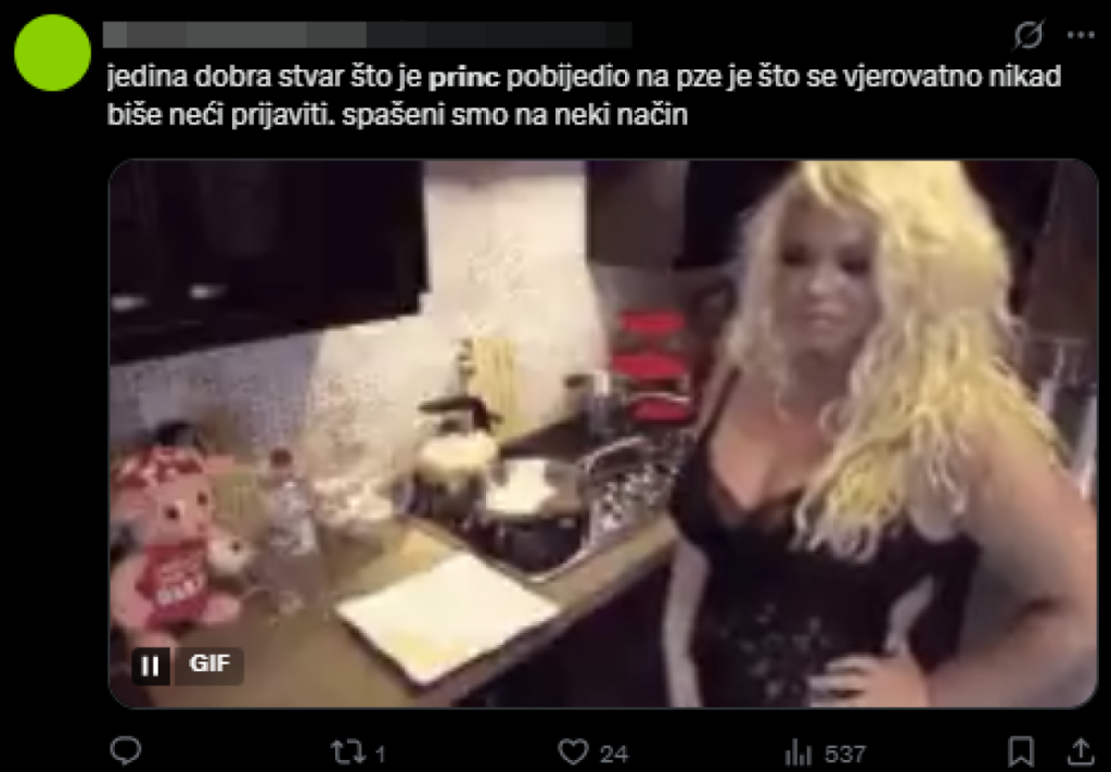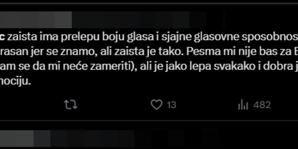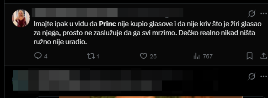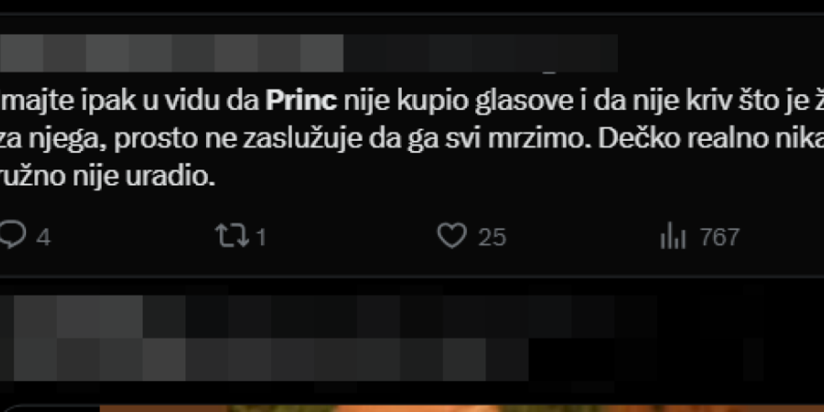 "Imajte ipak u vidu da Princ nije kupio glasove i da nije kriv što je žiri glasao za njega, prosto ne zaslužuje da ga svi mrzimo. Dečko realno nikad ništa ružno nije uradio."