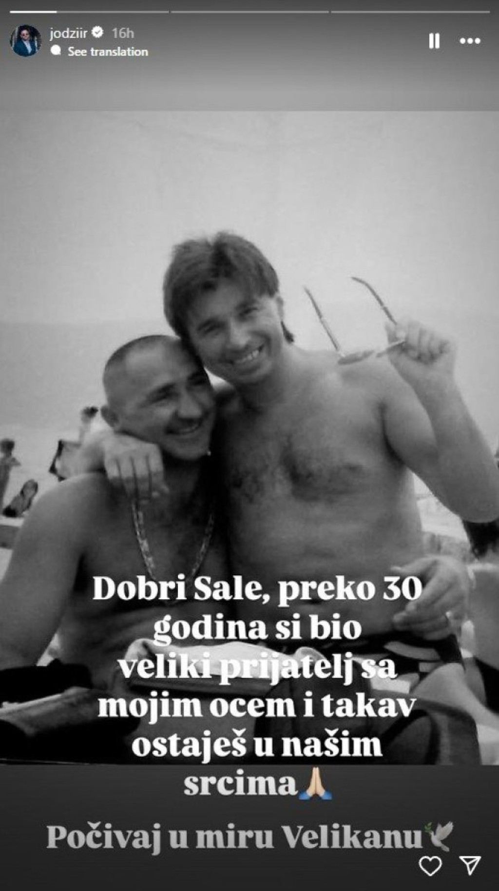 - Dobri Sale, preko 30 godina si bio dobar prijatelj sa mojim ocem i takva ostaješ u našim srcima. Poćivaj u miru velikanu.