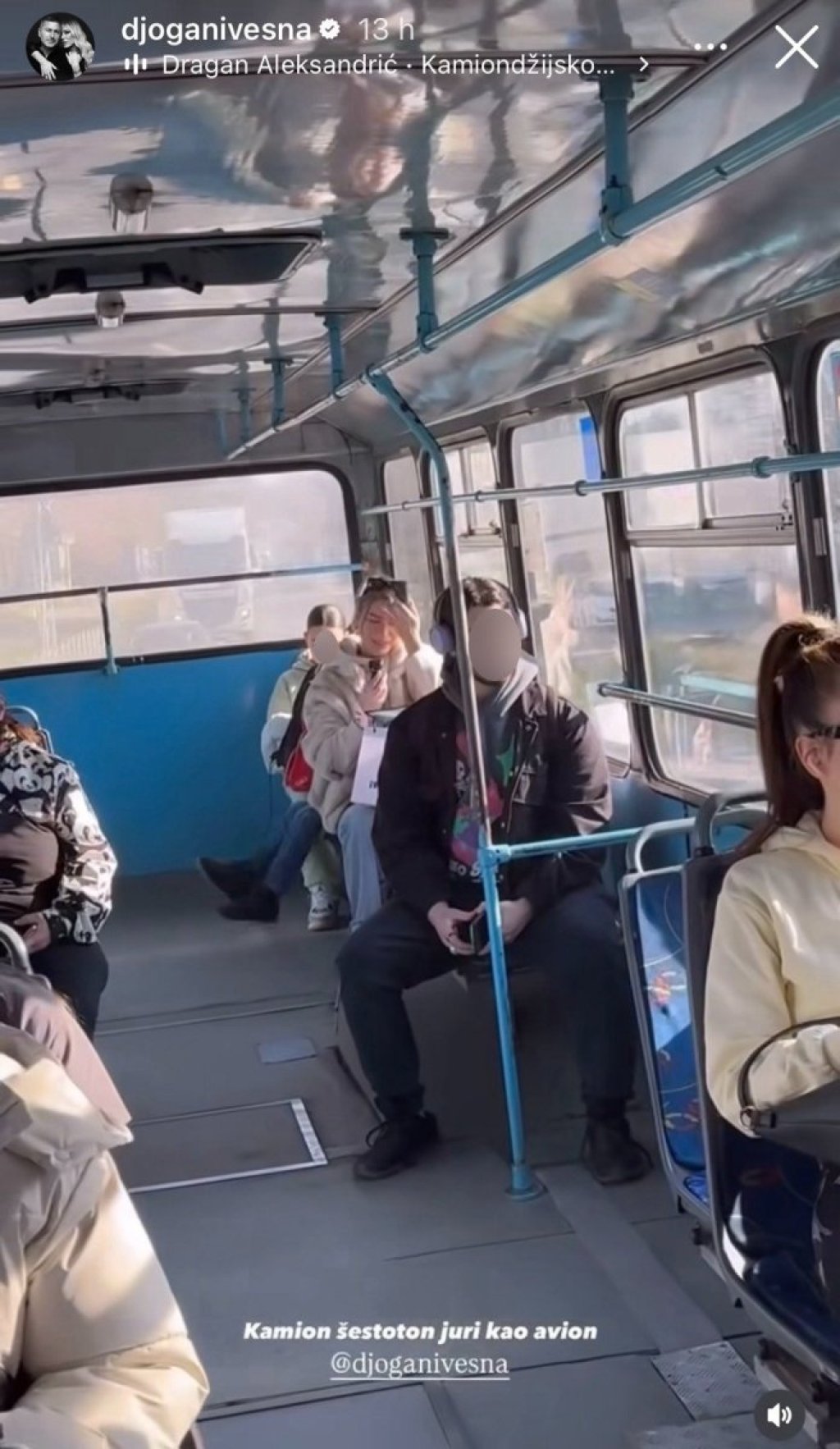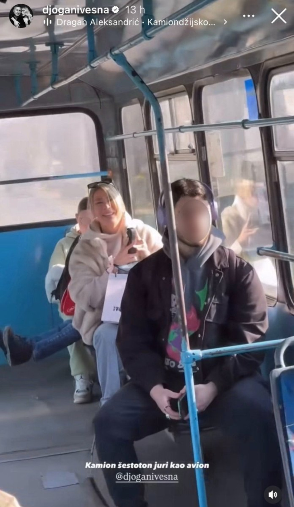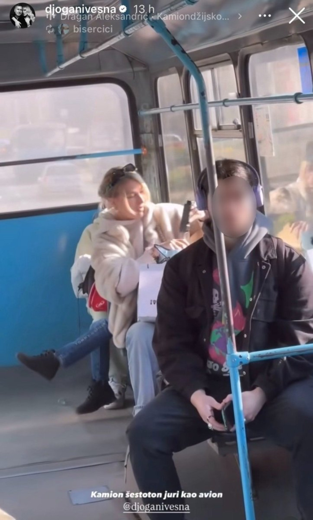 Vesna Đogani je snimljena dok je sedela sama u prevozu, a u rukama je držala kameru kako bi se snimila za društvene mreže.