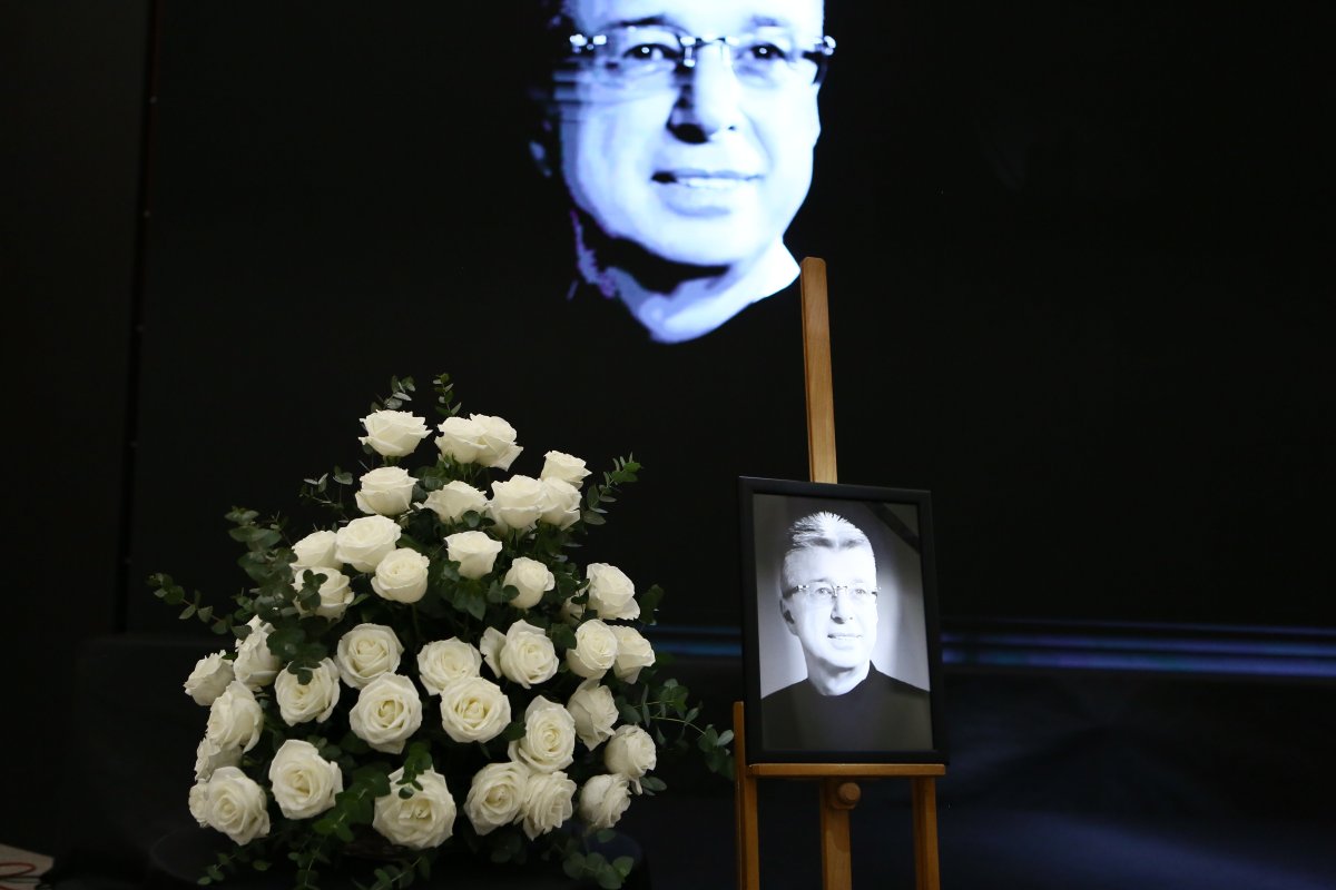 Na bini pored govornice nalazi se njegova fotografija i bele ruže, a spreman je i video-bim.