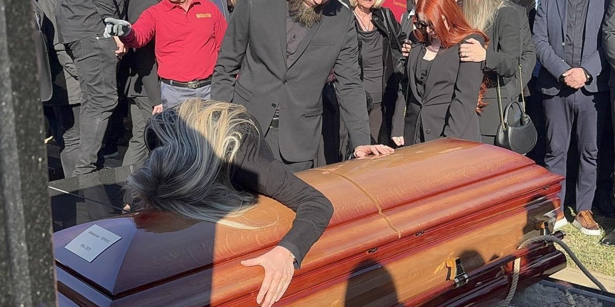 Suzana Jovanović se jedva oprostila od svog životnog saputnika. Pevačica je zagrlila kovčeg, dok je njihova ćerka Aleksandra neutešno plakala.
