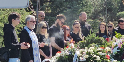 Suzana Jovanović, ćerka Aleksandra, sin Danijel i mnogi drugi došli su na groblje kako bi prisustvovali sedmodnevnom pomenu pokojnom osnivaču i kreativnom direktoru "Granda", Saši Popoviću.