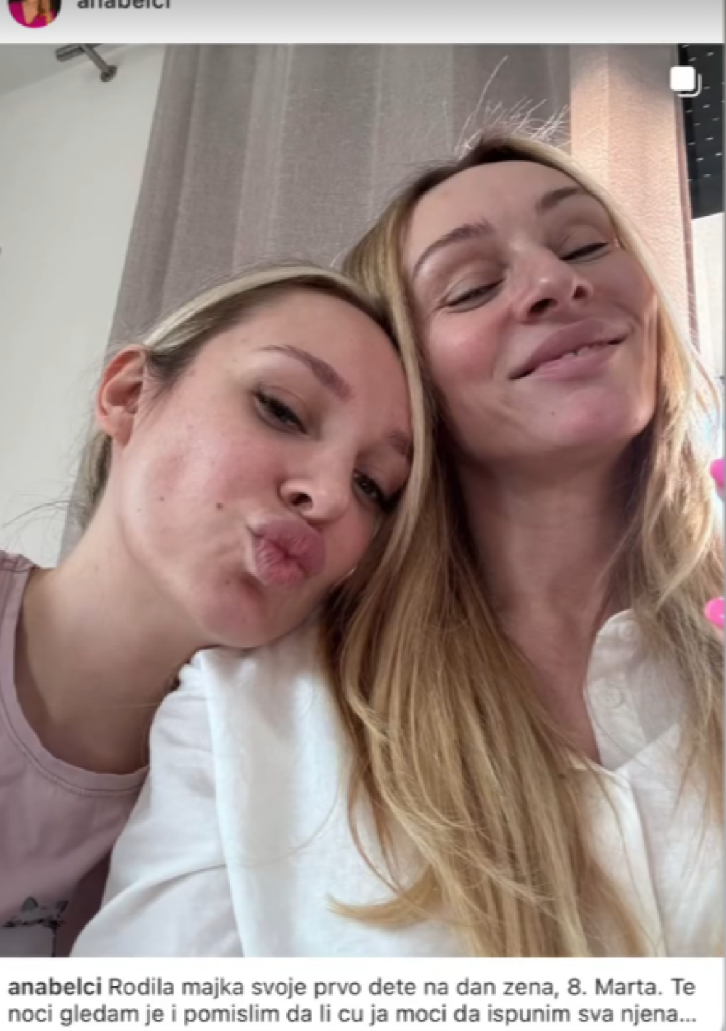 "Rodila majka svoje prvo dete na dan žena, 8. marta. Te noći gledam je i pomislim da li ću ja moći da ispunim sva njena očekivanja, da li ću biti dovoljno dobra, mlada sam. Ono što sam znala iz prve je da sam rodila sebi najbolju drugaricu, gledam je u one njene lepe oči i kažem ništa ne znam osim da ćemo to biti, najbolje. I bi tako 29 godina guramo mi sve naše dane bez i jednog dana izuzetka. Uvek, u svemu zajedno. Kroz oluje i mećave, kroz smeh do suza, ljubav je to, prva. Volim te lepoto, dobra dušo moja. Živa mi bila, nema mi veće sreće. Hvala ti što si me svemu naučila. P.S. Odakle meni dete od 29 godina. Vreme leti", napisala je Anabela uz objavu njihove zajedničke fotografije, Luna joj je odmah odgovorila.
