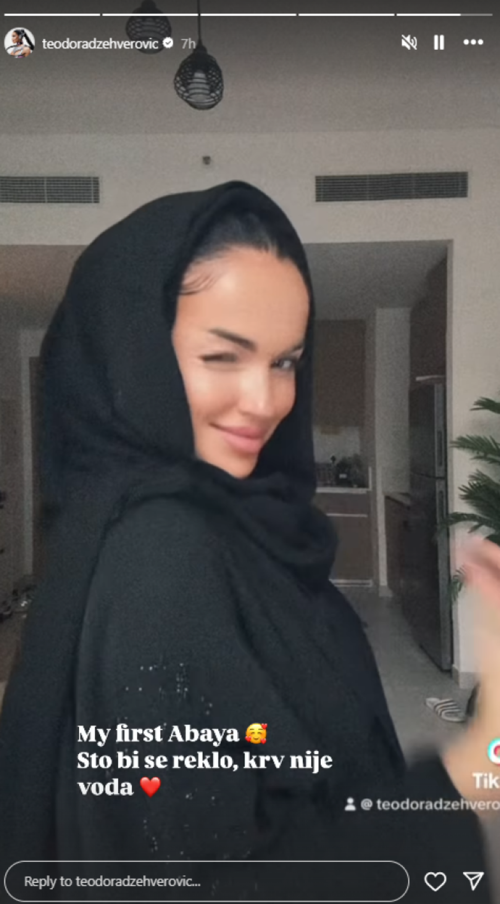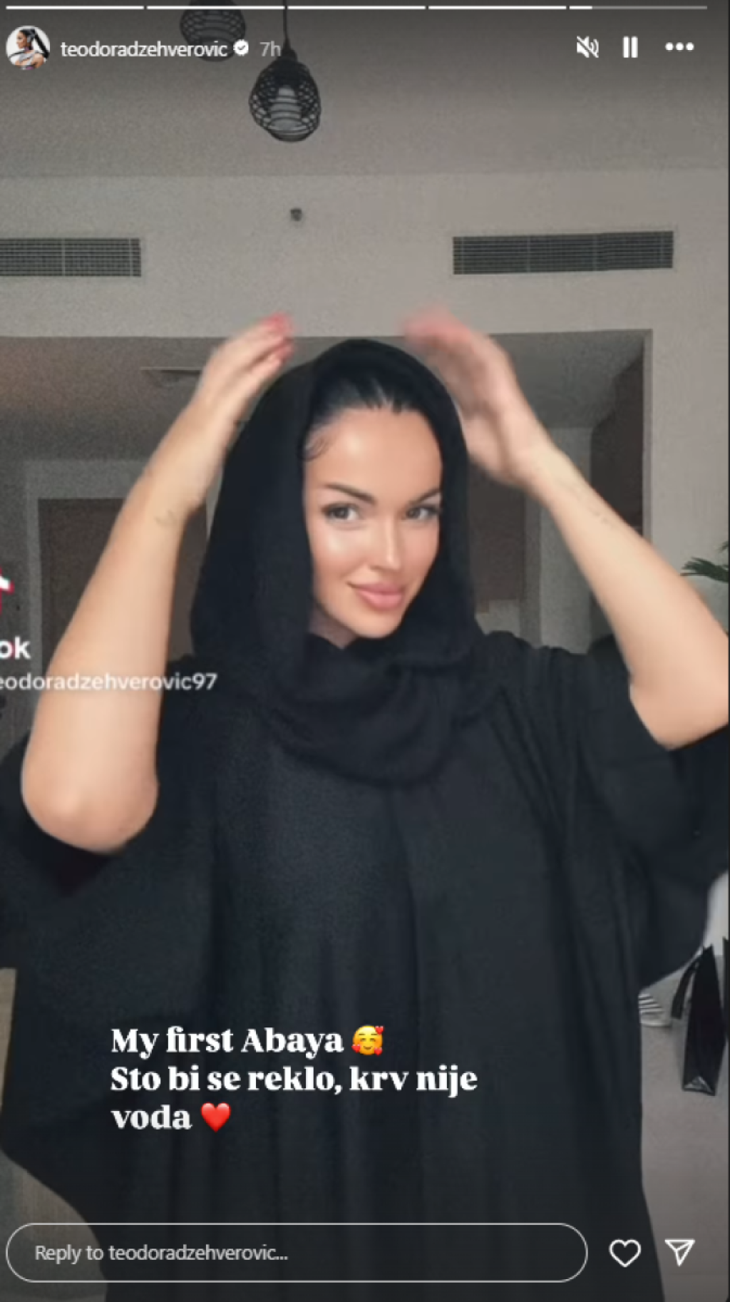 Ona je za potrebe svog videa, koji je okačila na Instagramu, pokazala kako prvi put nosi tradicionalnu islamsku abaju, odnosno ogrtač koji žene nose u islamskim zemljama.