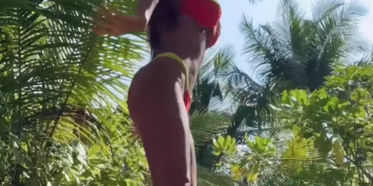 Na glavi je imala maramu, a silikoni samo što nisu ispali iz belog bikinija. Izazovni stajling pokrenuo je lavinu komentara.