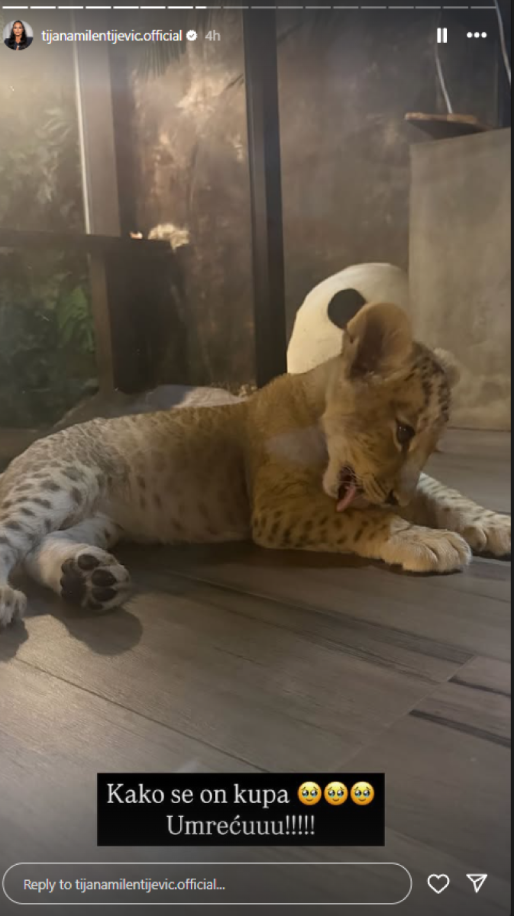 "Ne mogu vam opisati koliko sam srećna što sam imala priliku da se mazim sa ovim malenim slatkišem! Nikad ga neću zaboraviti!", napisala je Tijana na Instagramu i objavila sliku malenog lava u svom naručju.