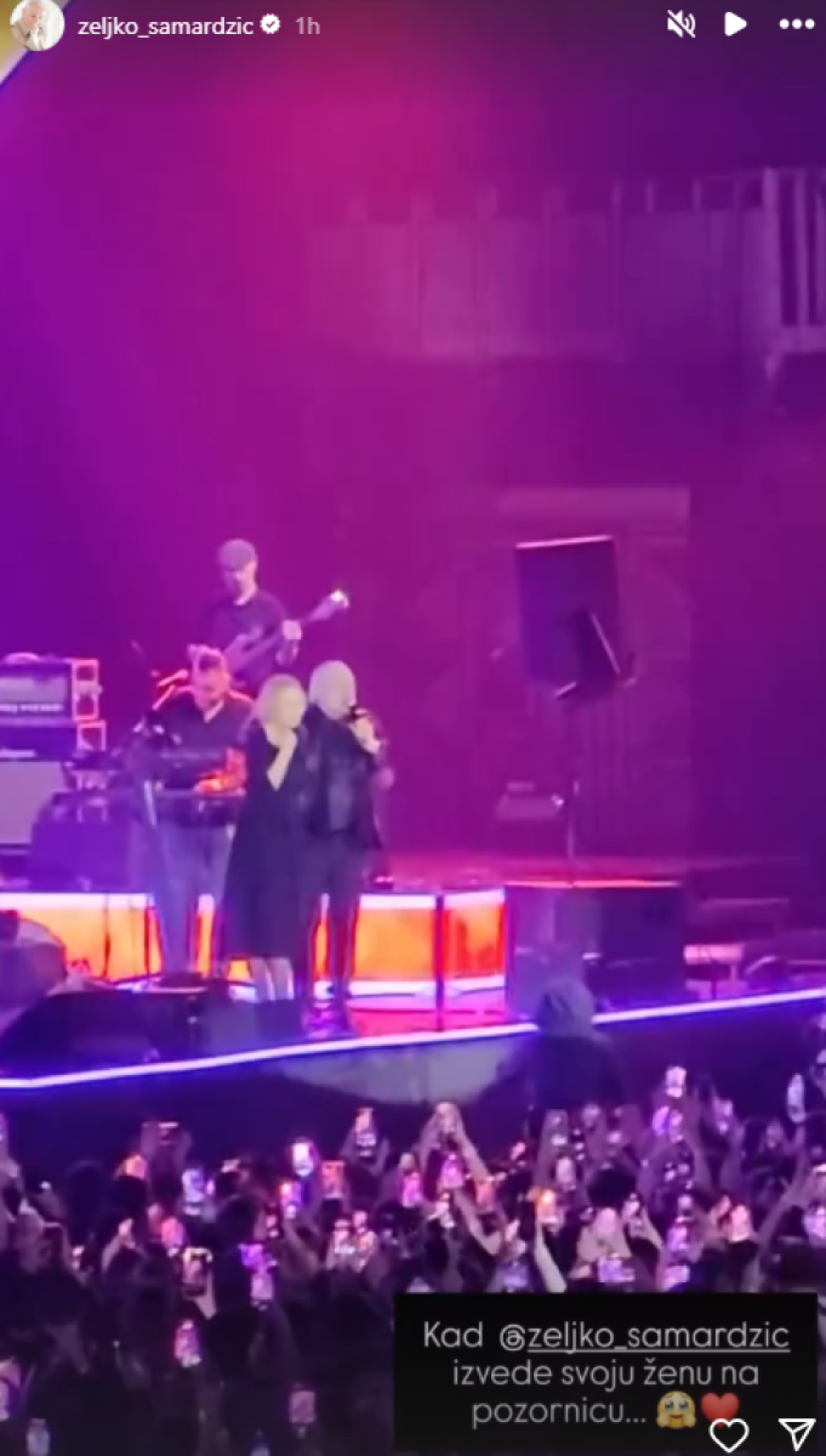 - Marina me zvala jednu noć u dva sata i rekla da je napisala divnu pesmu za moju suprugu Maju. Kada sam pročitao tekst, shvatio sam da je to pesma za sve dame koje polako ulaze u neke ozbiljnije godine, da budu zavodljive i dopadljive svojim muškarcima. Popalite sva svetla na telefonima, napravimo zvezdano nebo. Majo moja, dođi da zaplešemo, nemoj da se stideti - rekao je Željko nakon čega mu se supruga pridružila na sceni.