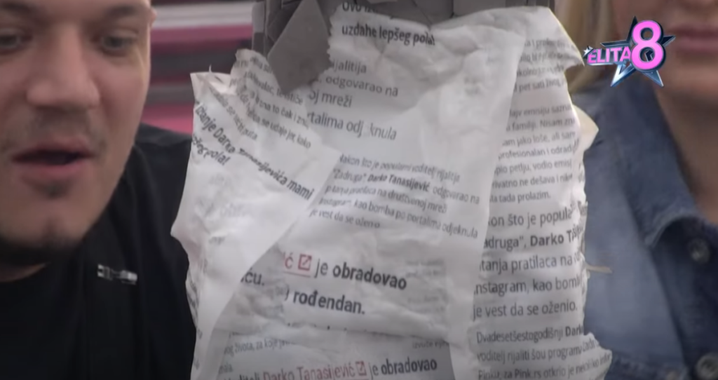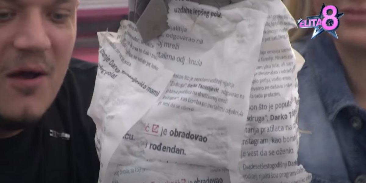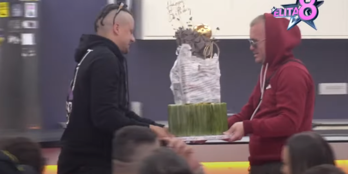 Ni voditelj nije ostao dužan, pa je elitarima doneo ogromnu tortu, što nikog nije ostavilo ravnodušnim. Ono što je svima zapalo za oko jeste to da je torta bila oblepljena isečcima iz novinskih članaka u kojima se pisalo o Tanasijeviću.