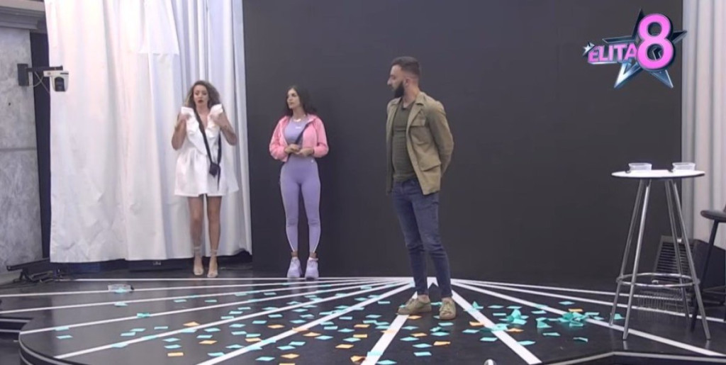 Voditelj Darko Tanasijević kao i svake nedelje sinoć je otišao je do izolacije kako bi pokupio nominovane učesnike i odveo ih u diskoteku. Nominovani za izbacivanje iz "Elite 8" ove nedelje su bili: Ena Čolić, Ana Spasojević i Stefan Karić.