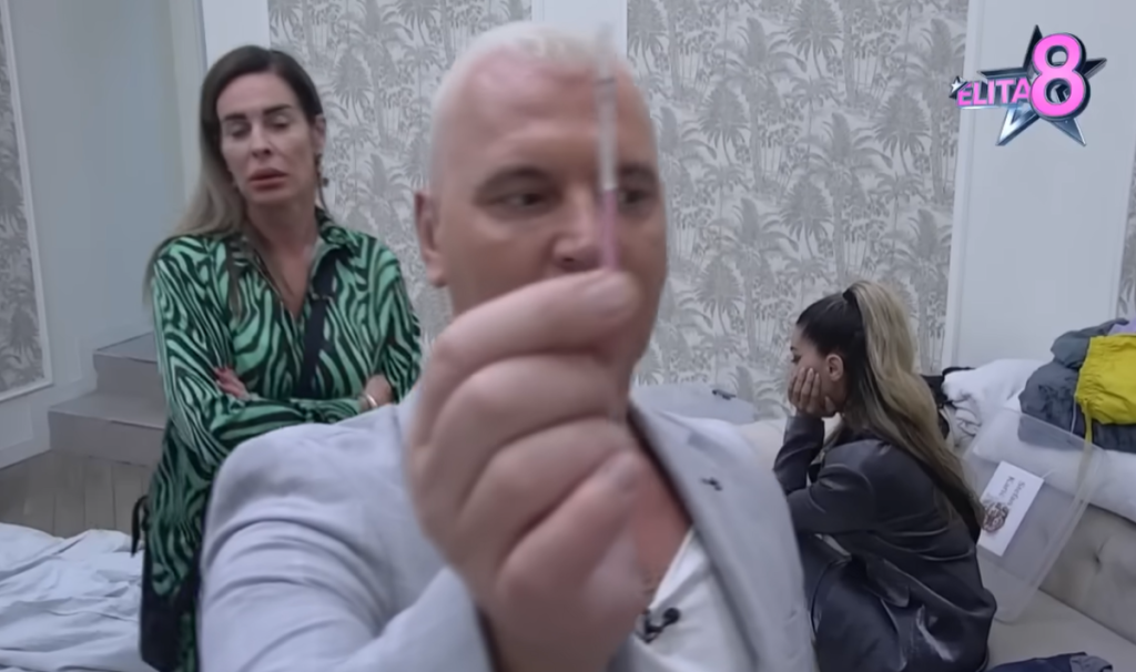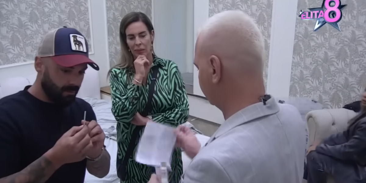 Voditelj Milan Milošević doneo je sinoć u "Elitu 8" test za trudnoću za Aneli Ahmić, a dok ga je rijaliti učesnica radila voditelj je razgovarao je sa Lukom Vujovićem u hotelu.