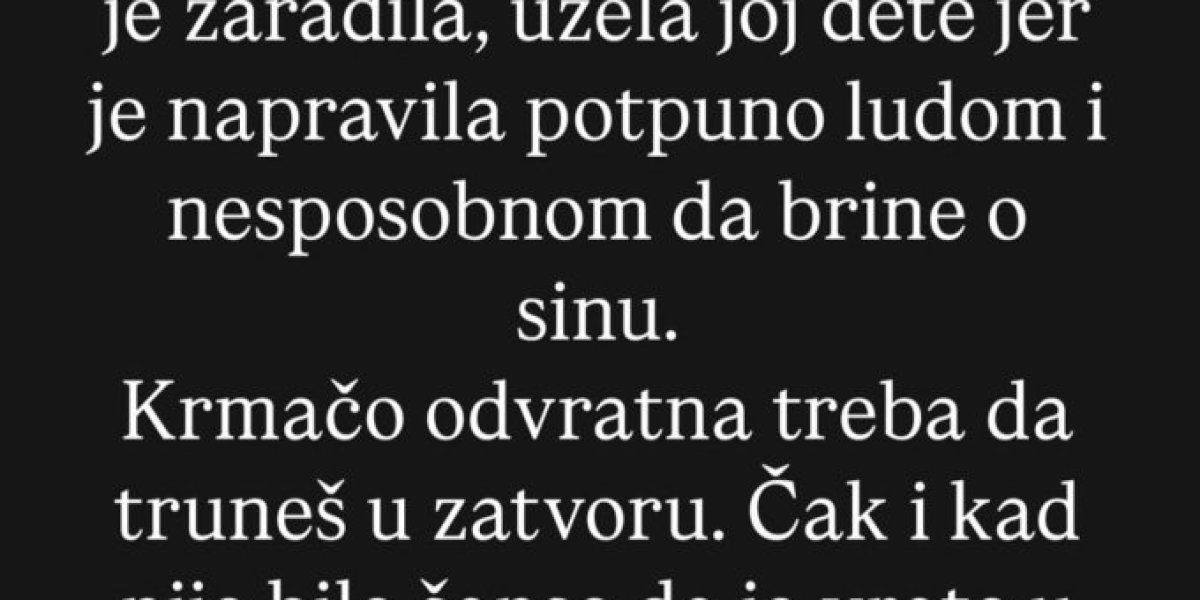 "Godinama je slala Miljanu u rijaliti, gledala kako joj se psihičko stanje urušava, a ona joj uzela pare, dete, sve! Napravila je od nje osobu koja nije sposobna da vodi računa ni o sebi, a kamoli o sinu!"