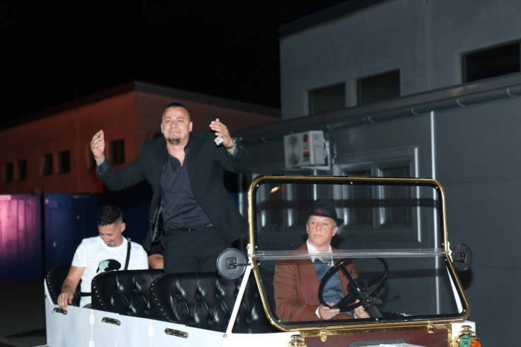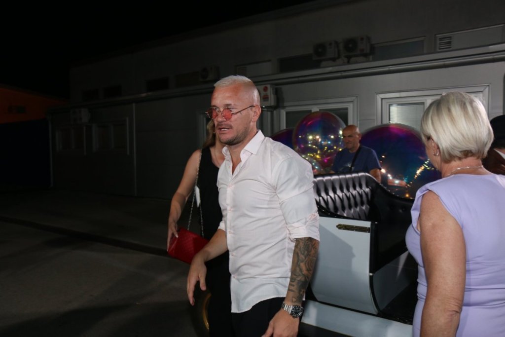20.45 U Šimanovce je stigao voditelj Zoran Pejić Peja čiji se sin Jovan bori za pobedu. U rukama nosi ogroman buket cveća za snajku Enu Čolić