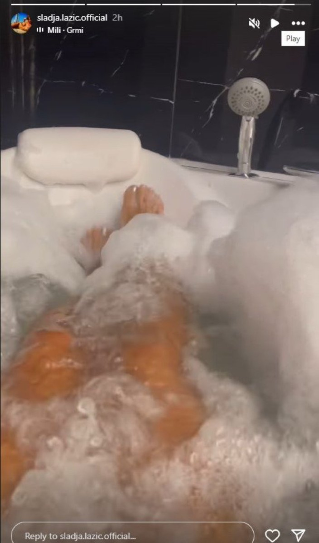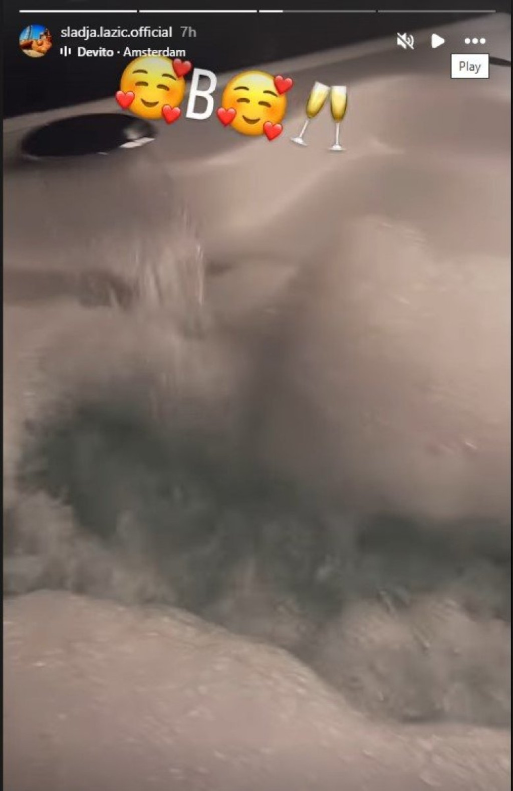 Najpre je podelila fotografiju sa zajedničkog ručka, a potom je usledio i zanimljiviji deo. Bivša zadrugarka je snimila trenutke opuštanja u đakuziju, u kojem je bila naga, a na snimku je simbolično dodala slovo 'B', uz emotikone srca i čaše vina - što jasno sugeriše da je i Bora bio prisutan.