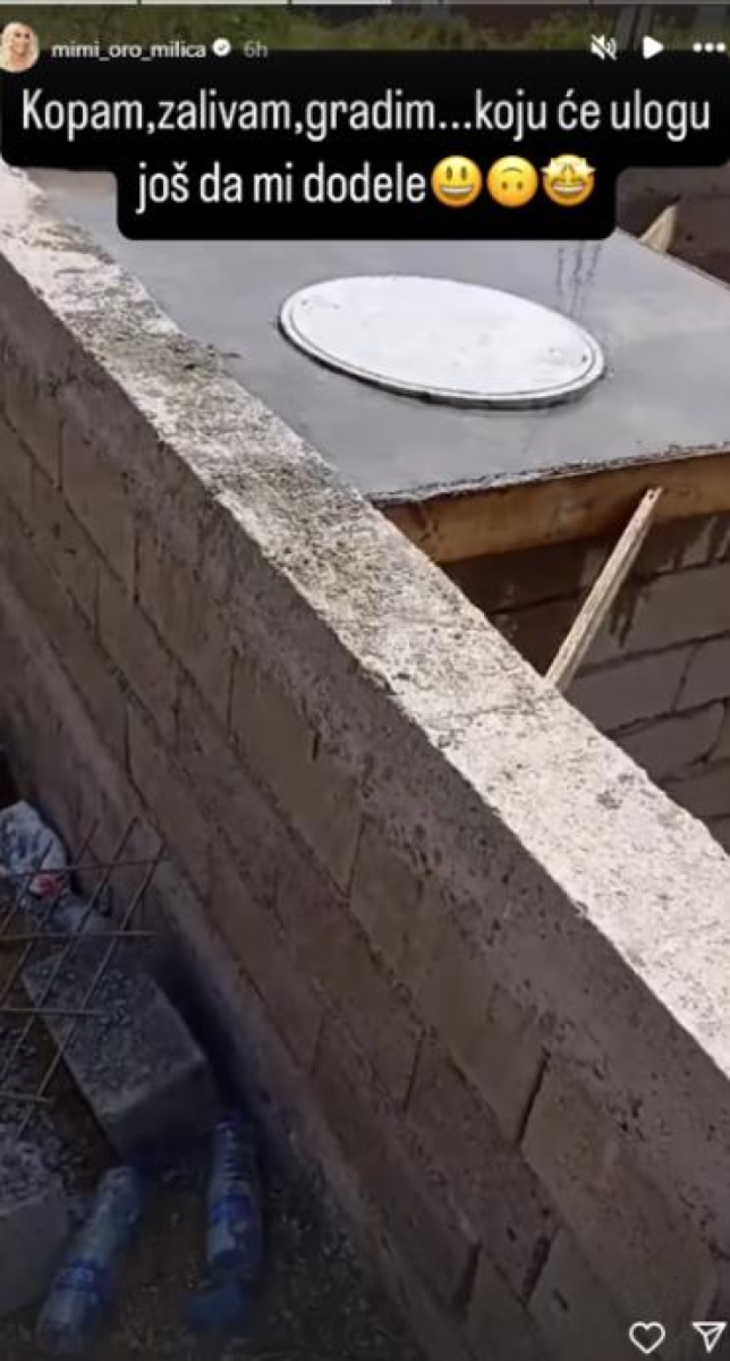 "Kopam, zalivam, gradim, koju će ulogu još da mi dodele" - napisala je Mimi, koja se na gradilištu pojavila u skupocenoj garderobi, snimljena je dok zaliva šahtu.