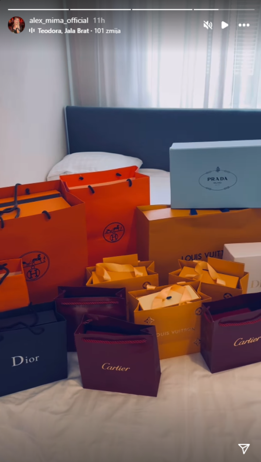 Aleksandru je, naime, po povratku u apartman sačekalo iznenađenje od verenika. Misteriozni kavaljer na krevet je poređao desetak kesa sa markiranom garderobom, a rijaliti učesnica nije krila oduševljenje, a poklonom se odmah pohvalila svima.