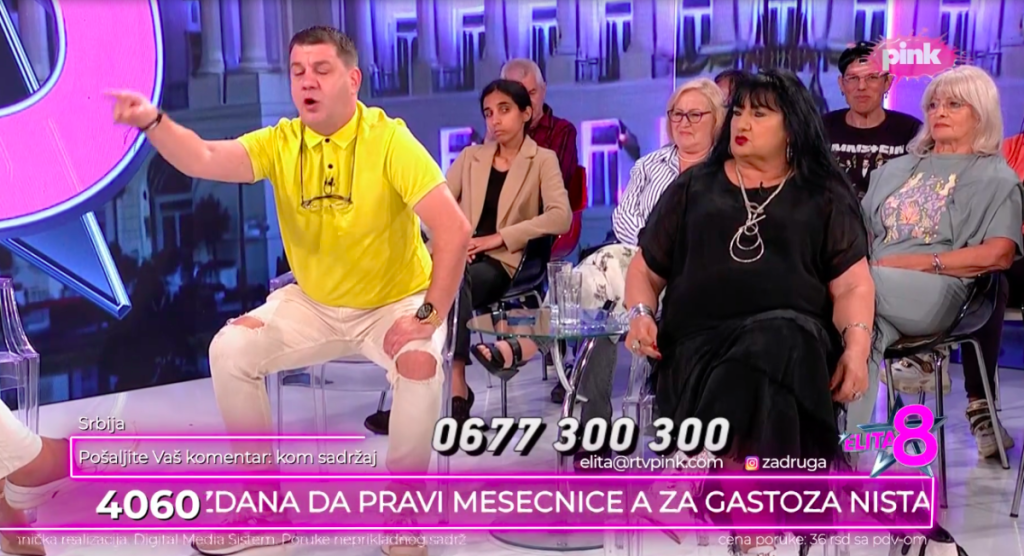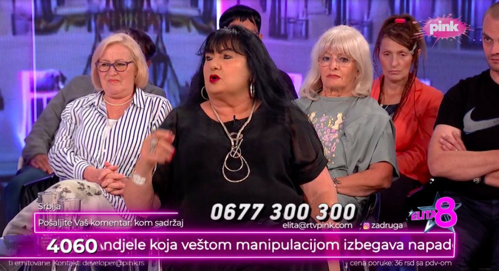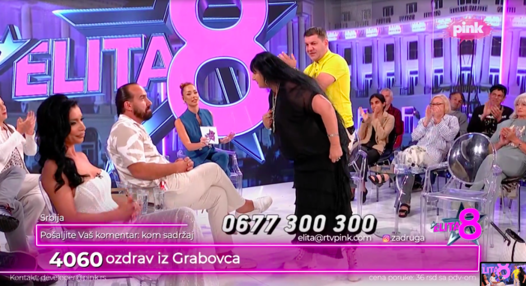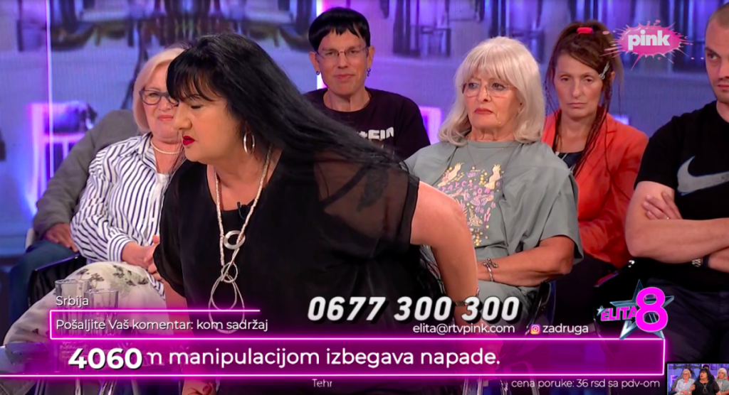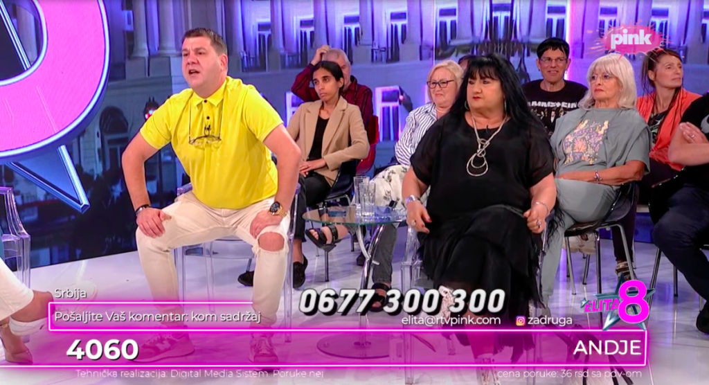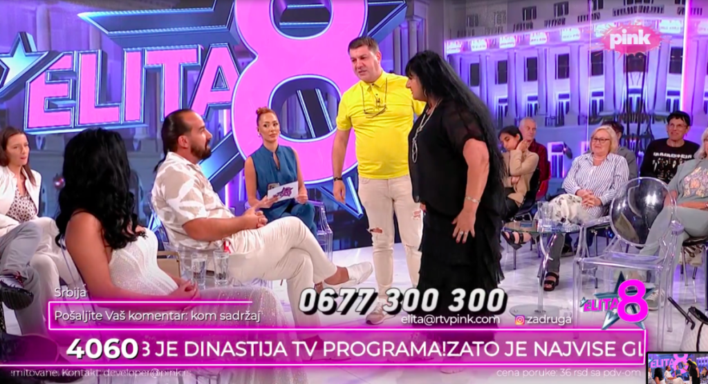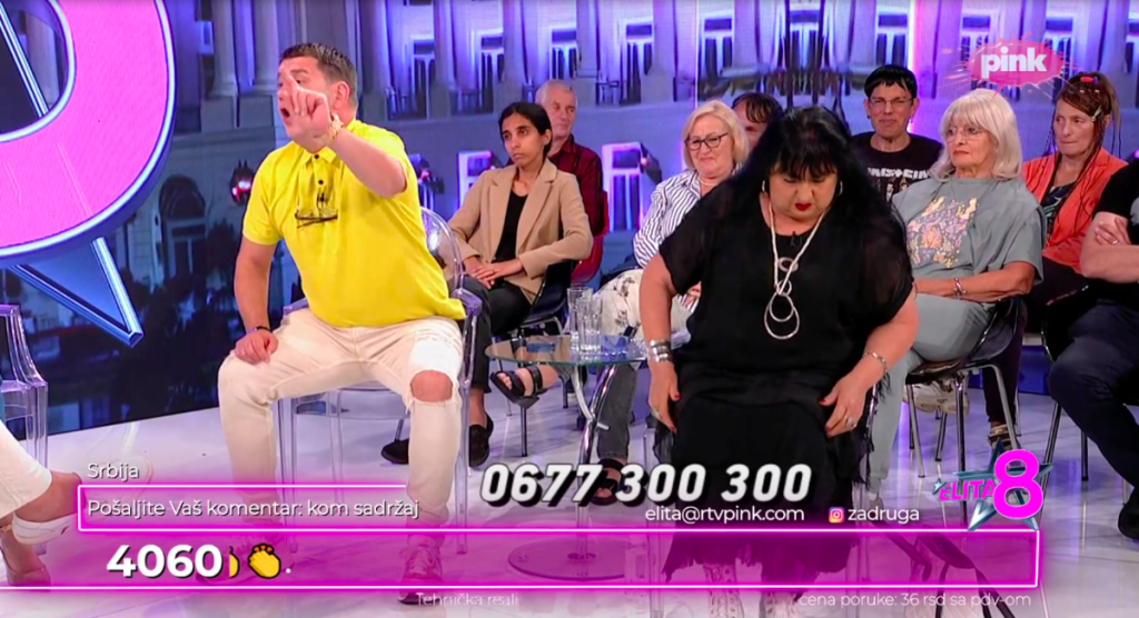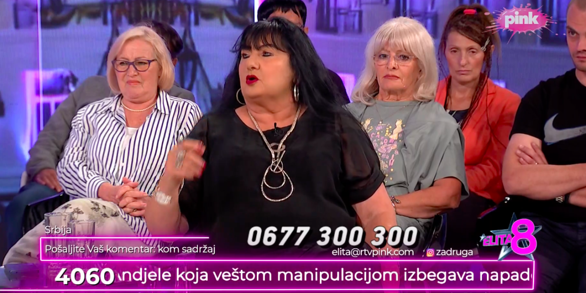 A onda je u emisiji uživo nastao pravi metež. Ivan Marinković i Milosava Pravilović udružili su se i nasrnuli na Aleksandru i Milovana Minića, koji su se u "Eliti 8" pomirili. Paru su uputili salvu uvreda, zbog čega je emisija deset minuta bila bipovana.