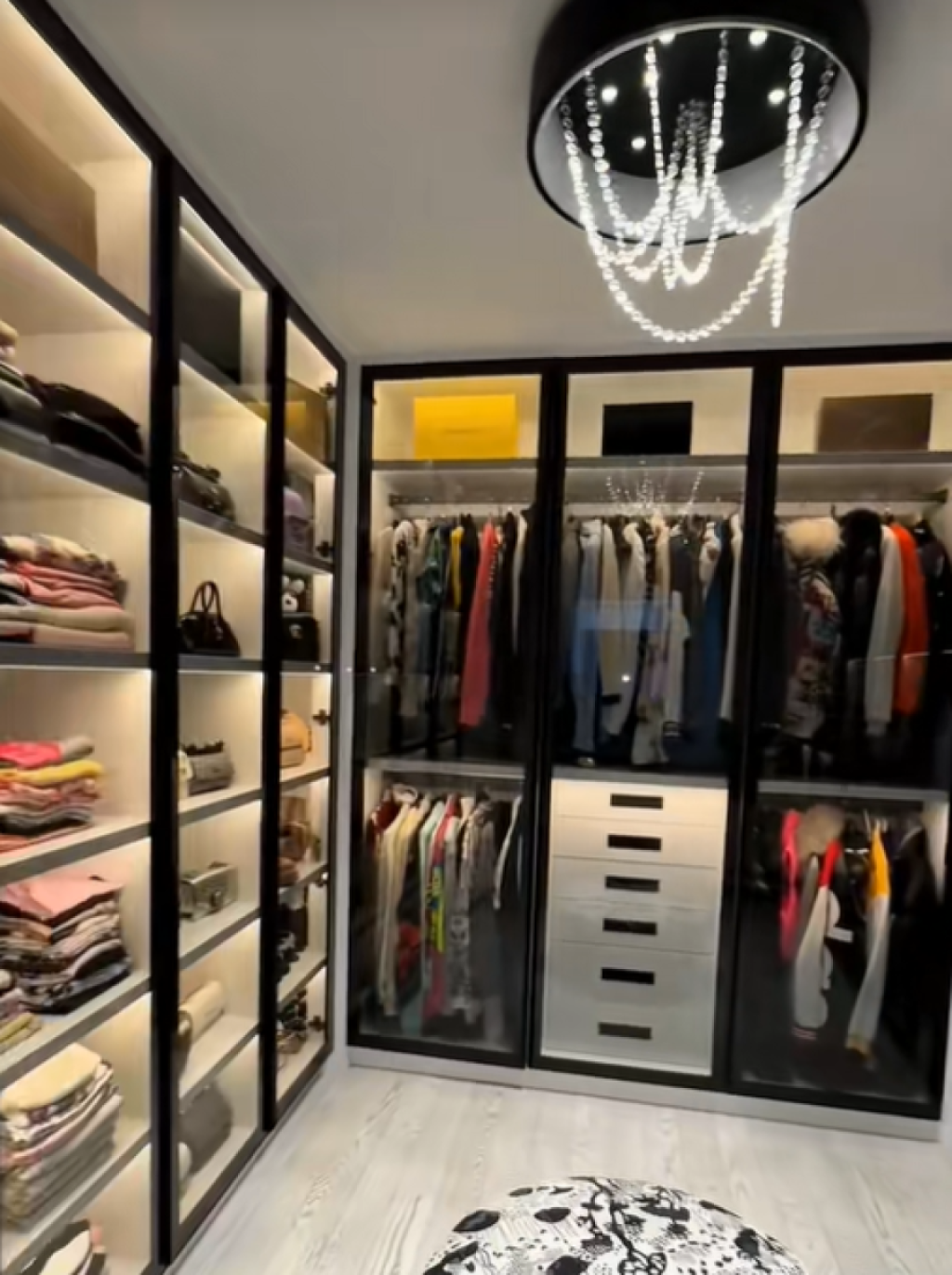 Ipak, najviše pažnje je privukao je ogromni garderober u američkom stilu, veći od nečije dnevne sobe, koji je Veštica popunila odećom i obućom od poda do plafona.