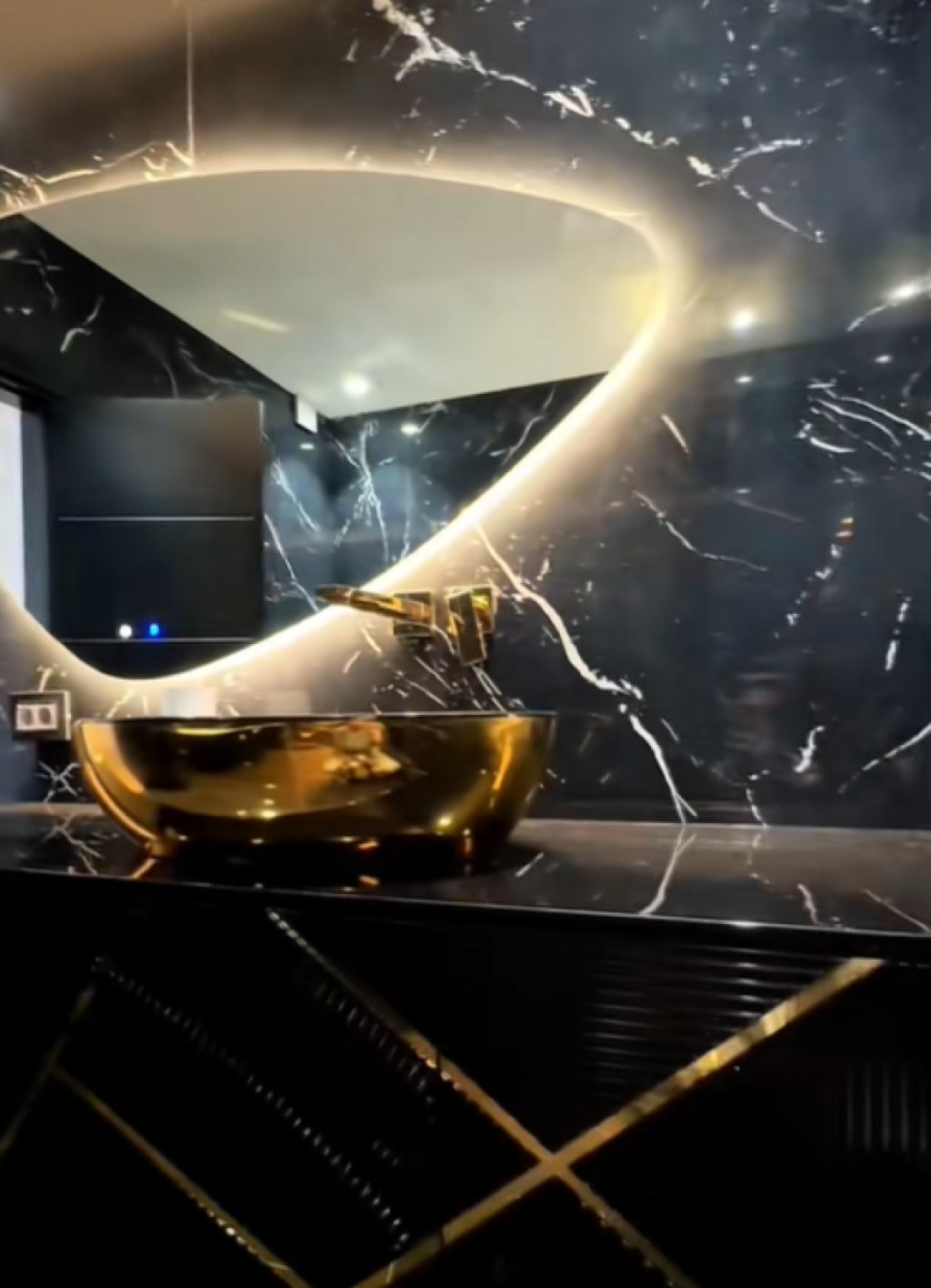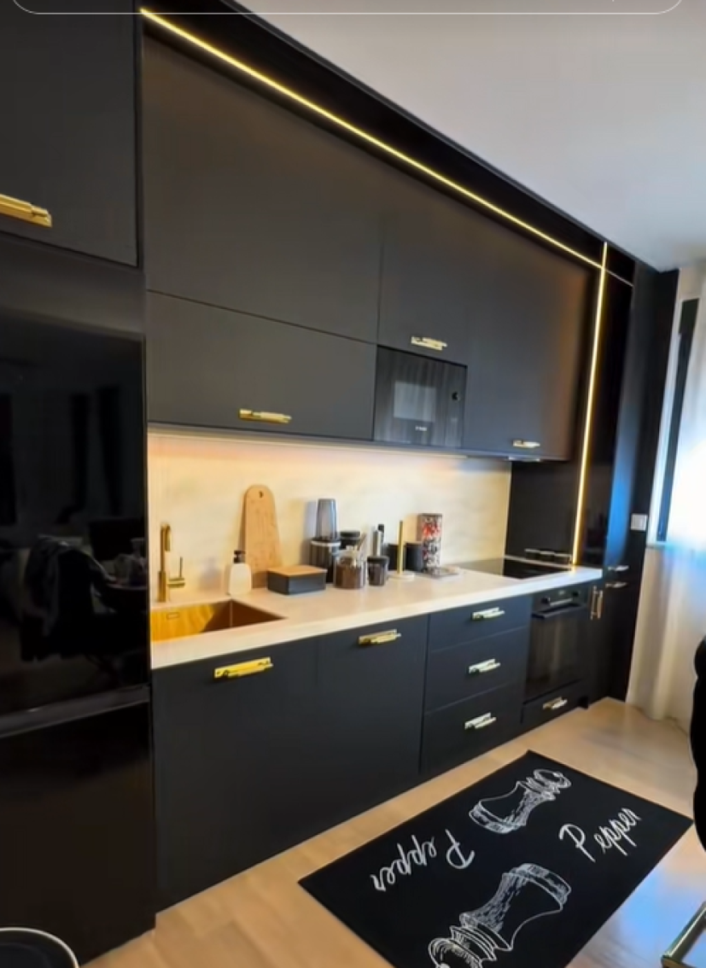 U stanu preovlađuju crno- beli tonovi sa zlatnim detaljima, a Veštica kaže da je "opsednuta kuhinjom" za koju je isplanirala svaki detalj. Kupatilo je opremljeno crnom keramikom, a starleta se pohvalila da u njemu ima čak i televizor na zidu.