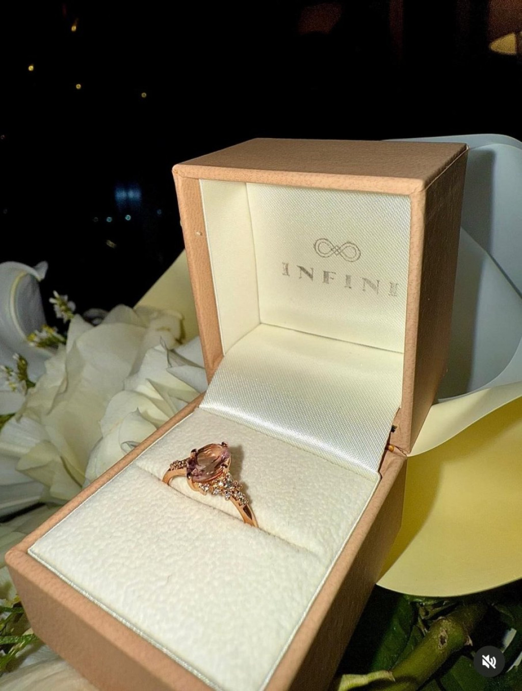 Fotografije ovog bajkovitog trenutka otkrivaju da je svaki detalj pažljivo isplaniran, a na pevačicinoj ruci zasijao je prsten sa raskošnim dijamantom.