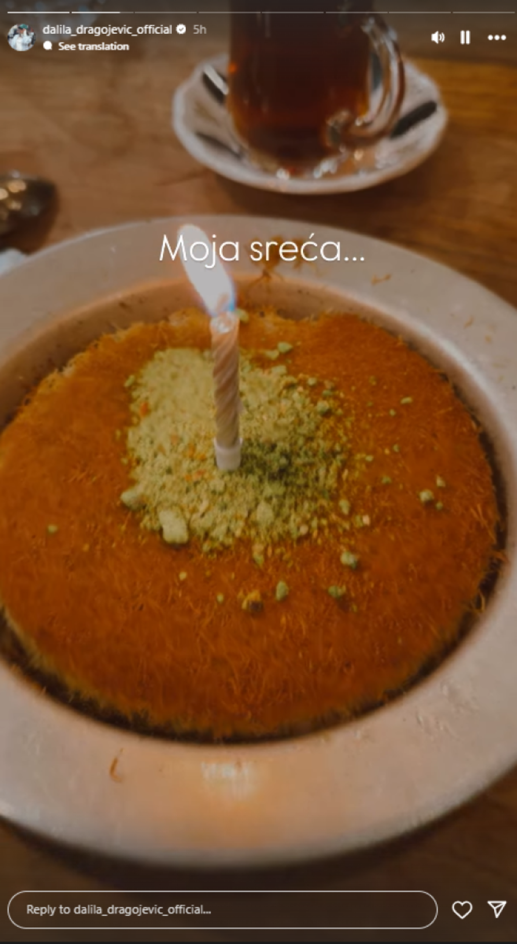 "Kao na starim slikama koje čuvaju priče o iskrenim ljubavima, i ova će jednog dana pričati našu. Da su bile dovoljne dve duše, jedno srce i skromna torta da se oseti najveća sreća", napisala je Dalila ispod fotografije sa rođendanske proslave.