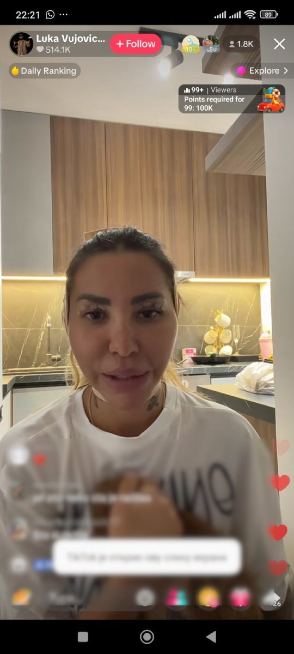 Uveče se nakratko uključila u lajvu na TikToku, koji je vodio Luka Vujović. Ipak, konačni rezultati intervencije još nisu bili vidljivi, budući da je Aneli bila u zavojima i sa otokom.