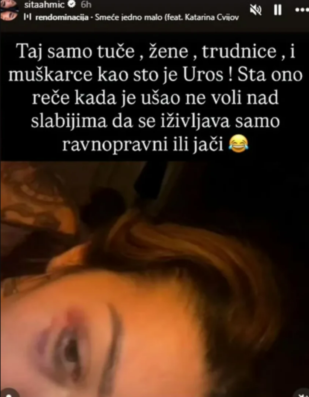 - Taj samo tuče žene, trudnice i muškarce kao što je Uroš. Šta on reče kad je ušao? Ne voli nad slabijima da se iživljava, samo ravnopravni ili jači - napisala je Sita ispod sestrine fotografije.