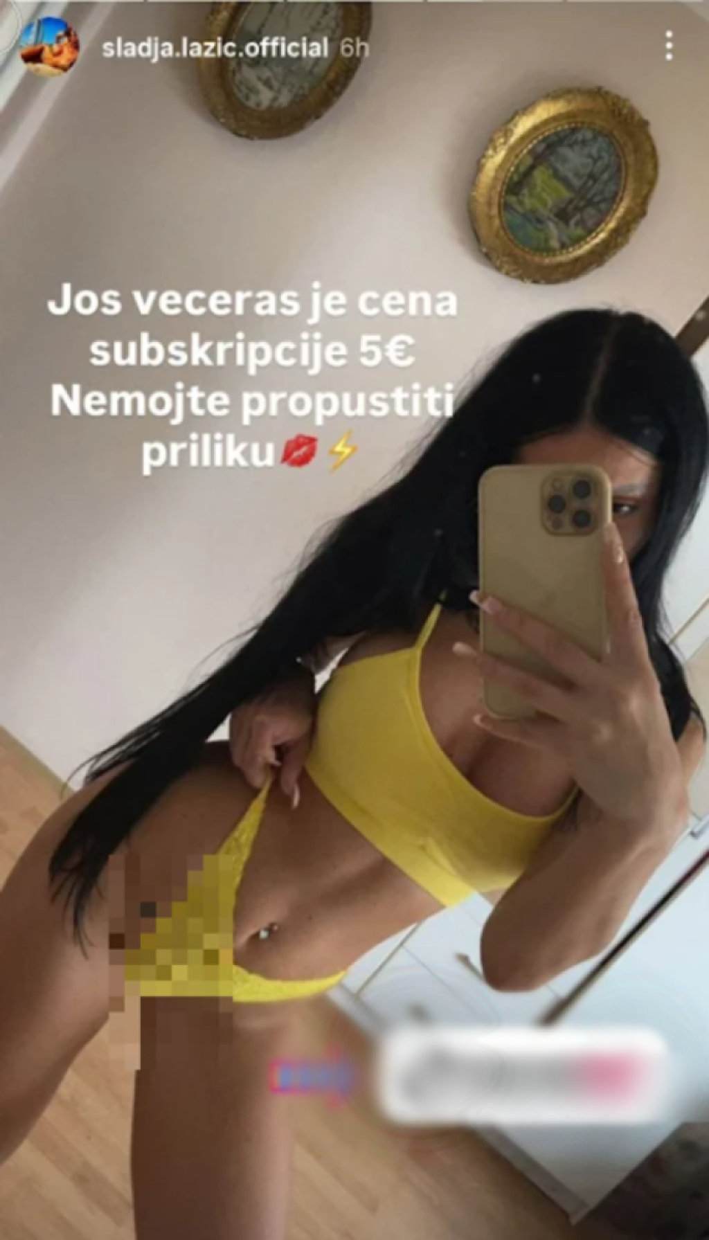 "Još večeras je cena 5 evra. Nemojte propustiti priliku", napisala je Poršelina uz fotografiju u donjem vešu.