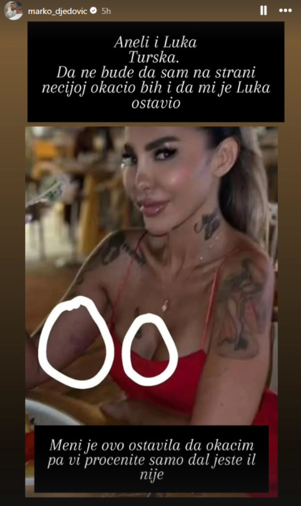 "Aneli i Luka. Turska. Da ne bude da sam na strani nečijoj, okačio bih i da mi je Luka ostavio", napisao je Đedović uz fotografiju.