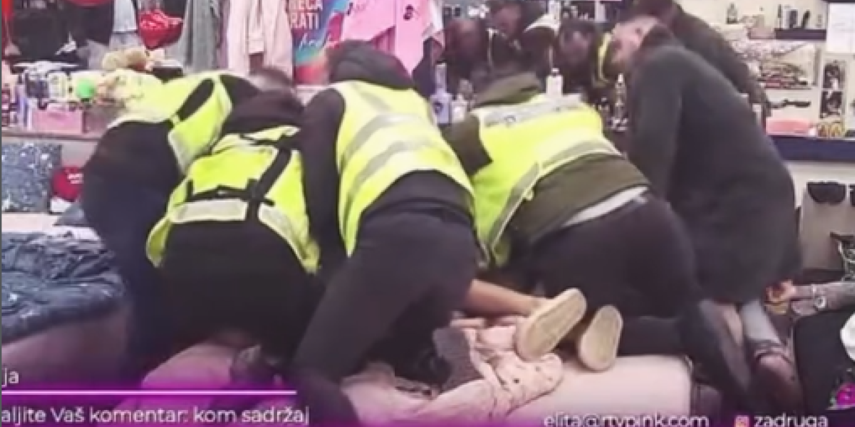 "Majo pusti je", urlali su učesnici rijalitija, dok je obezbeđenje pokušavalo da skloni Marinkovićkine ruke sa Tanje, u čemu su na kraju uspeli.