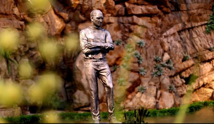U sklopu impresivnog grada koji se prostire na tri hektara, izgrađeno je jezero Stiva Džobsa, sa vodopadima, i ostrvom. Upravo na tom ostrvu je veliki platinasti kip ovog velikana, inače jednog od osnivača kompanije "Epl".