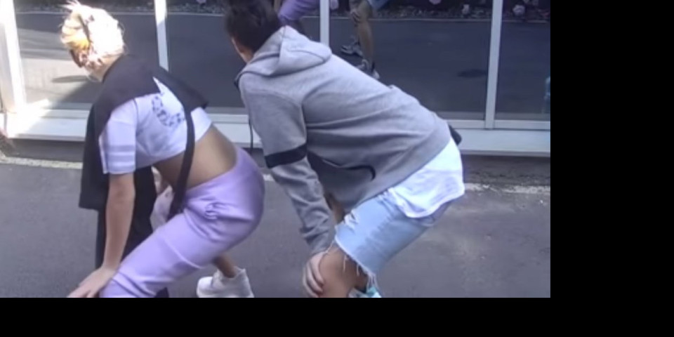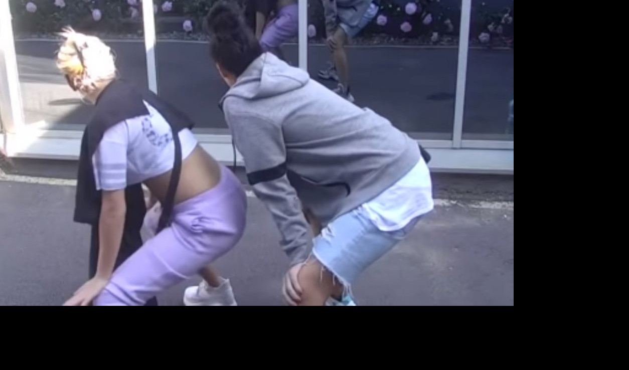 Mina je uhvatila Ninu oko struka, a potom joj pokazala korake koje mora da prati kako bi postigla efekat mrdanja pozadinom.