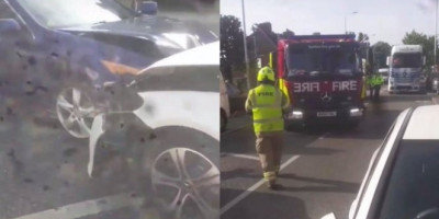 Koliko vidimo iz priloženog, jedan automobil je skrenuo u suprotnu traku i zakucao se u drugi. Iako se vidi da šteta nije velika, policajci, vatrogasci i hitna pomoć su odmah došli na lice mesta.