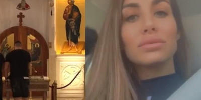 U haljini sa crnom, providnom mrežom, Slobina devojka je bez ičega preko ušla u crkvu. Nije imala čak ni brushalter koliko možemo videti po snimku jer se na leđima ne vidi traka. Sve pogledajte u snimku ispod na 0:35.