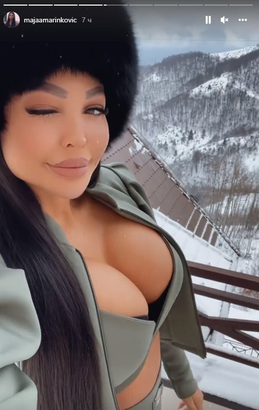 Naime, Marinkovićeva trenutno uživa na Kopaoniku, a čak joj ni temperatura u minusu nije smetala da pokaže svoje silikonske grudi koje je istakla u prvi plan.