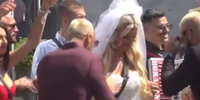 Aleksandra Nikolić izašla je iz hotela, a onda su usledili strastveni poljupci sa Dejanom. Njih dvoje zaigrali su sa svatovima i porodicom, uz muziku.