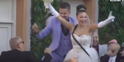 Presrećna mlada ušla je u limuzinu i sa mladoženjom igrala i pevala neprestano šireći ruke od radosti.