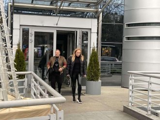 Osman sa suprugom Kristinom izlazi iz zgrade Pink televizije