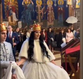 Mladenci su došli luksuznom limuzinom do crkve sa kumovima, a Filip je obukao elegantno svetlo sivo odelo dok je Maša blistala u raskošnoj venčanici nalik na princeze.