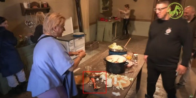 - Sad ga zakolji! - bodrila je Jakšićeva Jelenu, koja je posle dosta muke i više mahnitih udaraca sekirom uspela da preseče komad mesa.